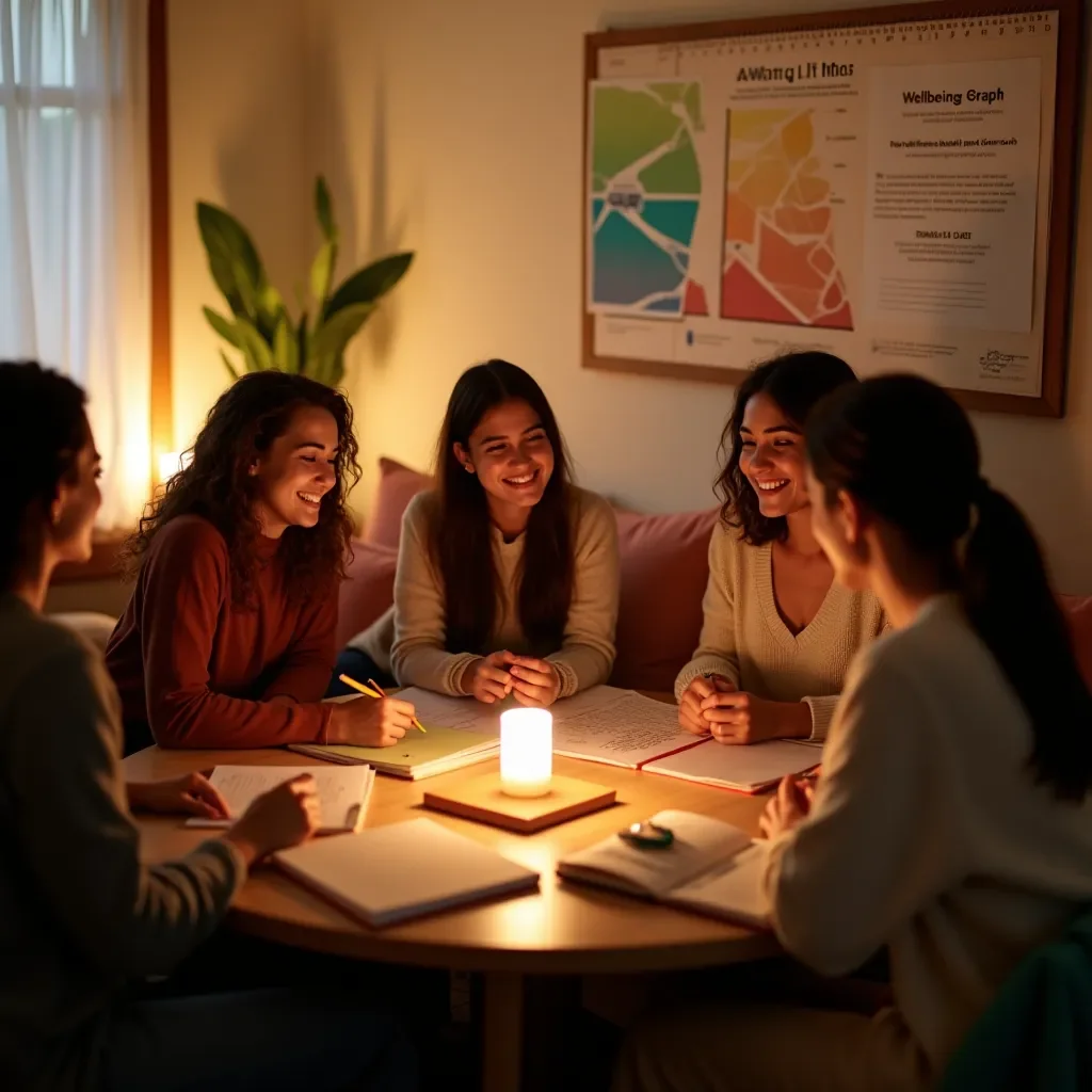Crear recursos digitales para apoyar las sesiones y talleres, incluyendo guías de bienestar y contenido para el 'Wellbeing Graph'.